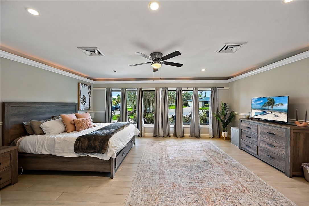 I also want to point out one of the guest bedrooms. This room is massive and has phenomenal lighting--not only are the recessed lights enough but there is accent lighting behind the crown. There's a really large walk-in closet as well. This could really work as a second master or a way for roommates to feel like they each have the best room in the house! Seriously, you have to see this one.