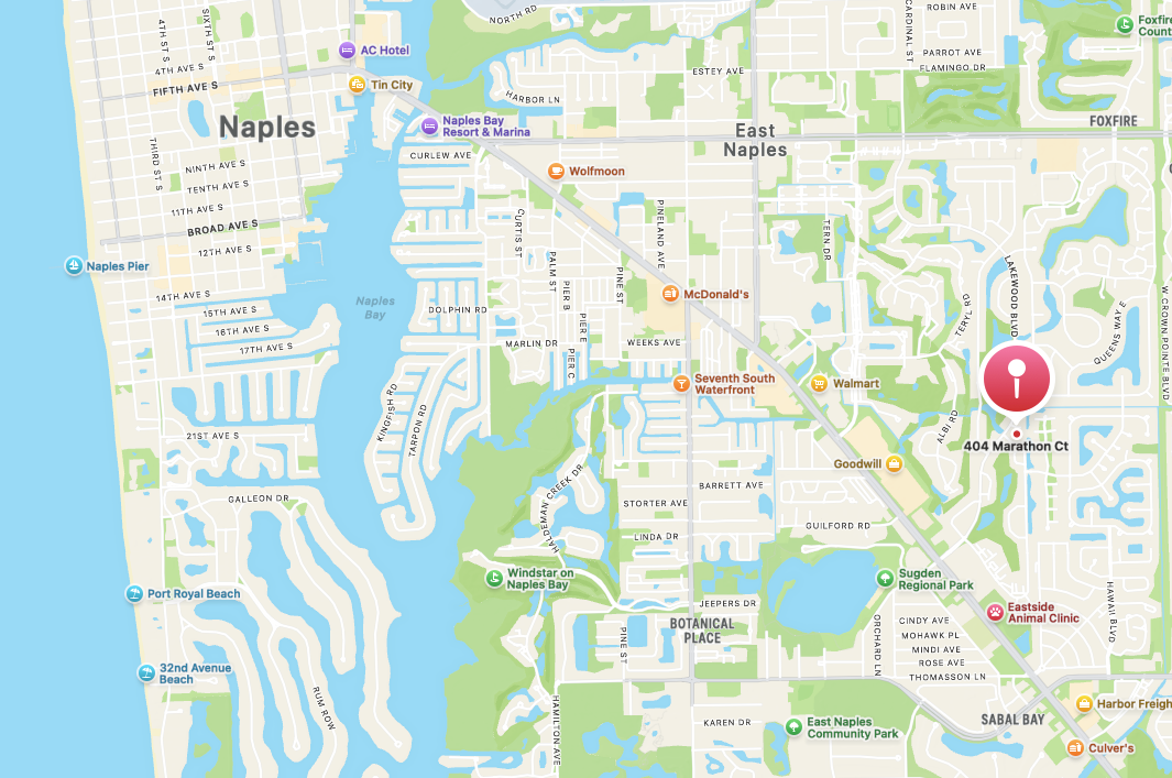 Finally, let's have a chat about the location. 404 Marathon Court is in the Lakewood neighborhood. This home is right in between Davis Blvd and East Tamiami Trail (US41). There are so many restaurants and shops in the area for you to enjoy yet you're also incredibly close to Tin City and 5th Avenue South. Want to go to the beach? That's a quick trip west and you're there. And if you're feeling like something completely new, take the 20 minute ride to Marco Island. It's a great staycation!