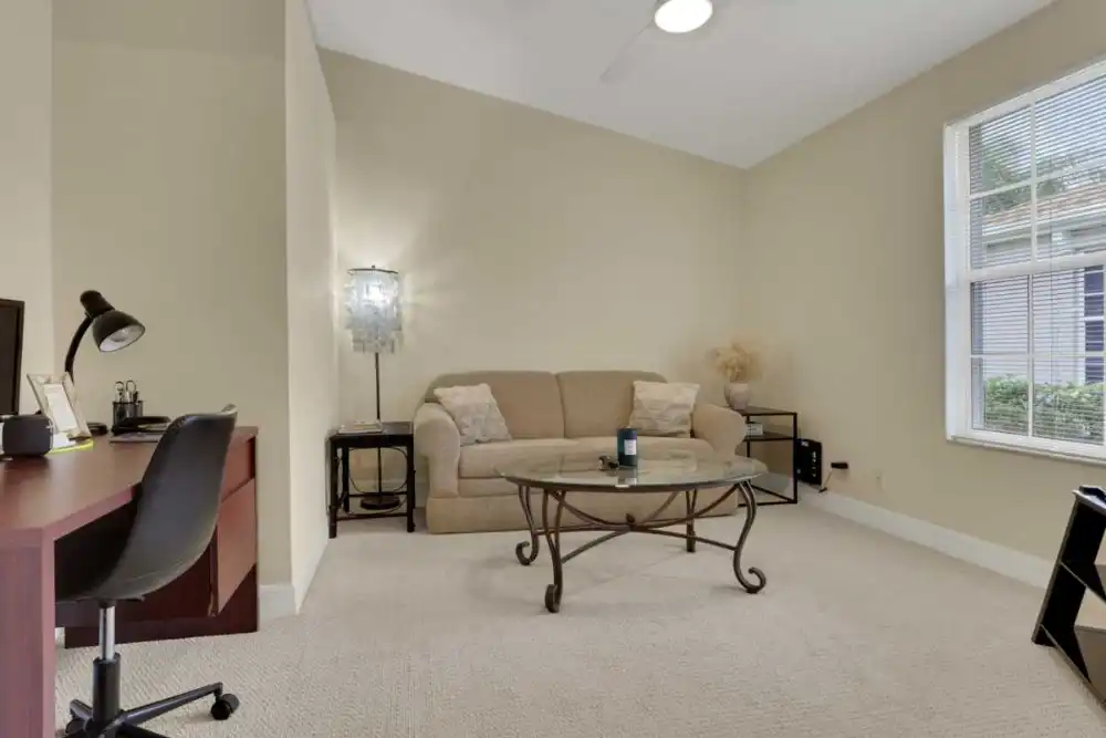 This view of the den below shows the double doors that can be closed off if you decide to use the den as a bedroom. There's plenty of room for the desk and a bed if you'd like to have additional guests.