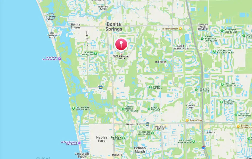Sterling Oaks is located in Naples, Florida, between Old 41 and US41 (with gated entrances to both!). It's just minutes to either Delnor-Wiggins Pass State Park in Naples or beautiful Barefoot Beach in Bonita Springs.