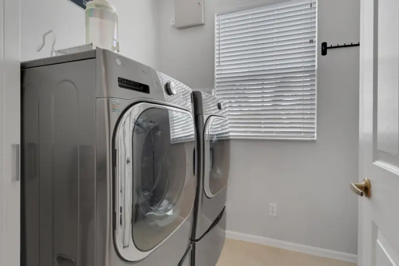 Newer washer and dryer in an actual laundry room and not just a closet.